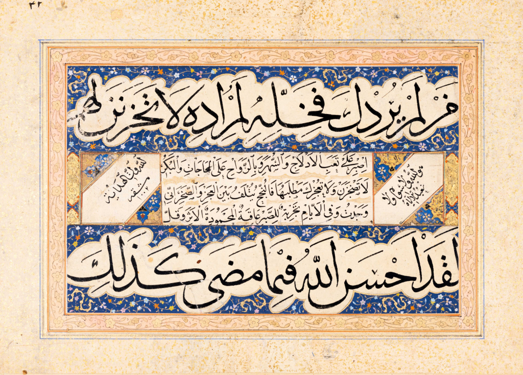 Lot 72: Calligraphie ottomane datée 1002H./1593-94.Dimensions: 15 x 23,5 cm