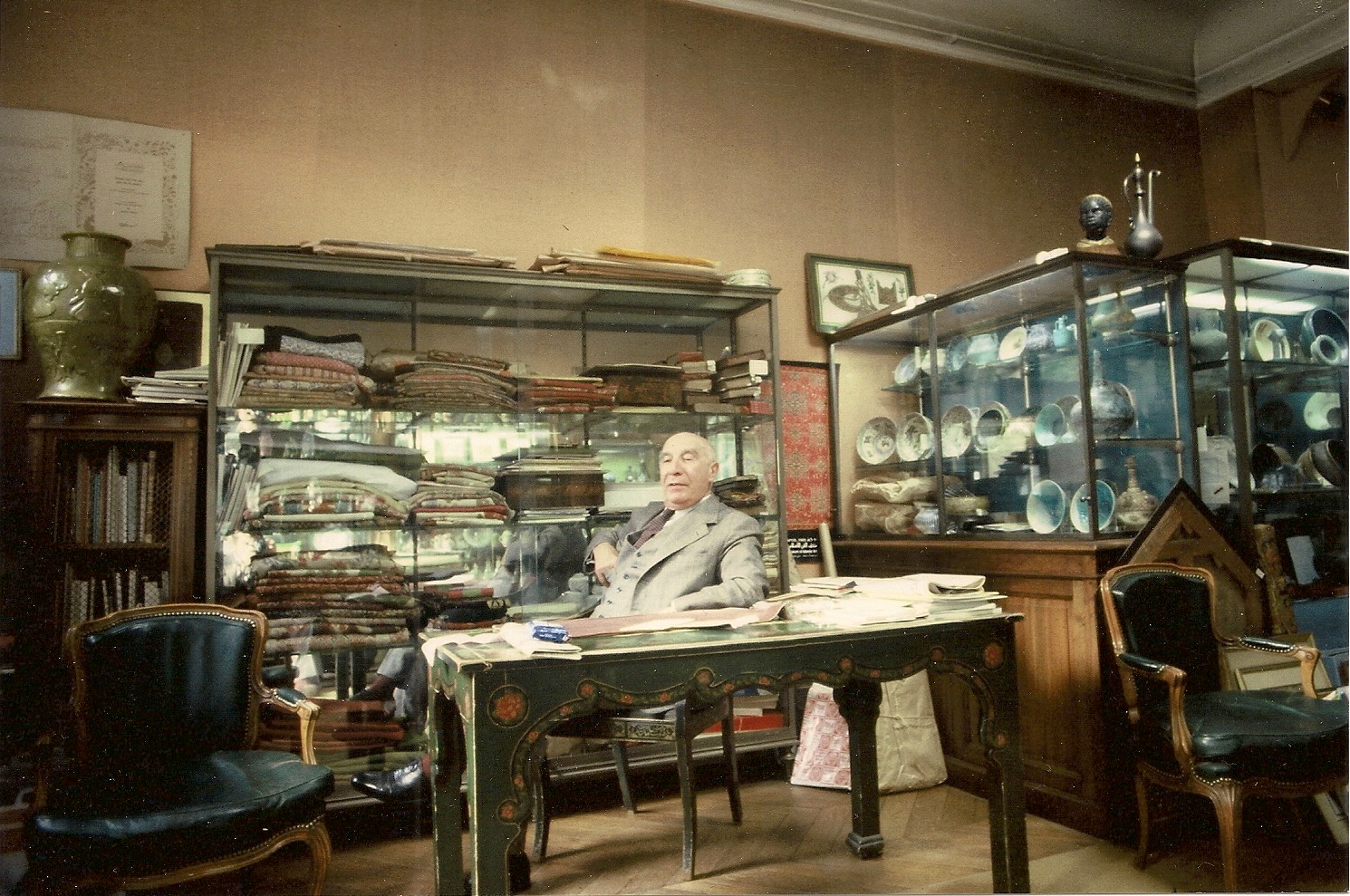 A member since 1945 of the « Syndicat des Négociants en Objets d’Arts » (the future « Syndicat National des Antiquaires »), Joseph Soustiel obtained French citizenship in 1947. An accomplished linguist and great connoisseur of Islamic art, he participated in the founding of the «Comité France-Turquie» in 1949 and oversaw, from 1952 onwards, along with Jean-David Weill the organisation of the first exhibition devoted to Turkish Art held in the Pavillon de Marsan of the musée des Arts Décoratifs de Paris (Splendeur de l’Art Turc, February-April 1953). Thanks to his invaluable collaboration, “413 of the most characteristic and expressive pieces of Turkish art” were allowed to leave Turkey for the very first time. Alongside this exhibition he published a short manual: L’Art turc. Céramiques, tapis, étoffes, velours, broderies (Paris, La Colombe, 1952). Although Joseph possessed a remarkable knowledge of Islamic Art, Islamic textiles and ceramics remained the closest to his heart, and it was to these subjects that he devoted several articles. A patron of the arts, he was a generous donator to the Islamic collections of the Louvre, of the « musée national de la céramique » in Sèvres, of the « musée des Arts décoratifs », as well as numerous other museums in France, in Turkey (Portière of the Green Mausoleum (Yeşil Türbe) and Cradle of the sultan Mahmud II at the Bursa museum) and throughout the world. Made a Knight of the Legion of honour in 1977, he handed his gallery over to his son Jean in 1983. He died in Paris on the 25th January 1990.